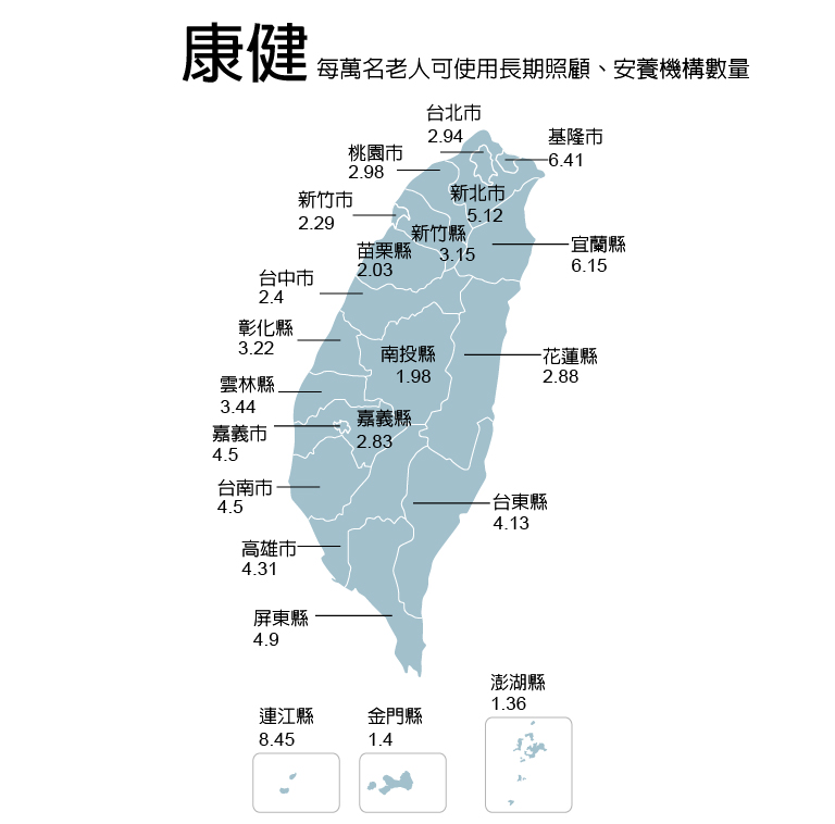 「開始變老」,是各縣市共同面臨的問題,廿二縣市中,共有十一縣市跨越「老人比小孩多」門檻,前三名是嘉義縣、雲林縣、澎湖縣;其中嘉義縣老年人口數量,是幼年人口的一點五倍。